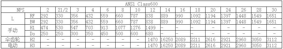 美標(biāo)鉻鉬鋼閘閥ANS1 Class600主要外形尺寸:
