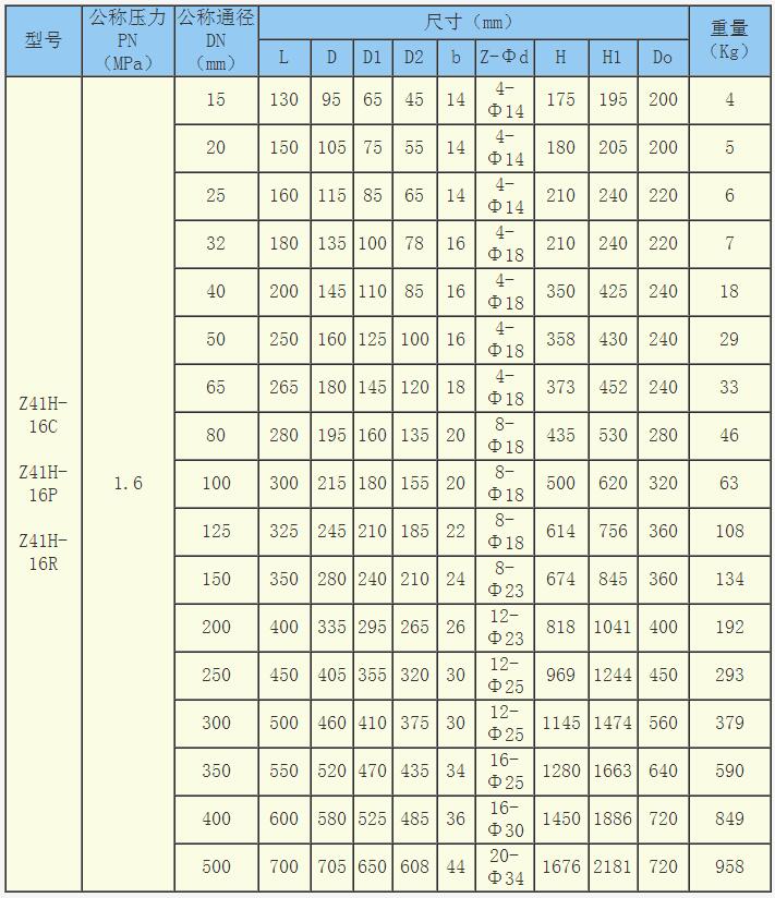 精鑄重型帶材質閘閥主要外形與尺寸::(Z41H-16)