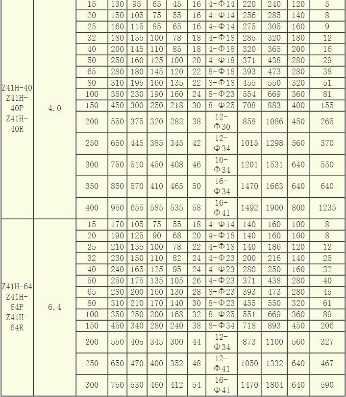 精鑄重型帶材質閘閥主要外形與尺寸::(Z41H-25、40、64)