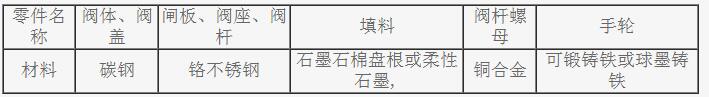 四、Z11H絲口閘閥主要零部件材料: