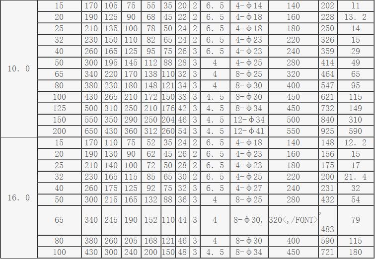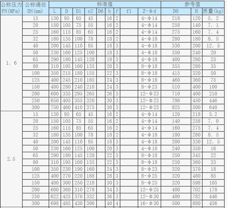 法蘭截止閥主要外形尺寸、連接尺寸及質量