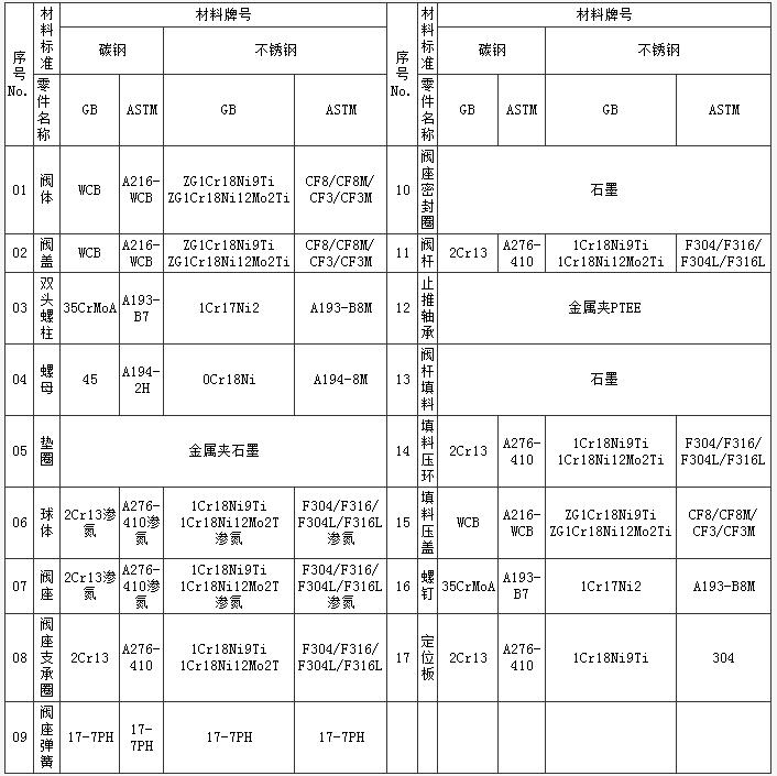 法蘭浮動(dòng)球閥主要零件材料