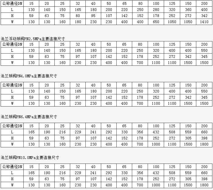 法蘭浮動(dòng)球閥PN1.6MPa主要連接尺寸