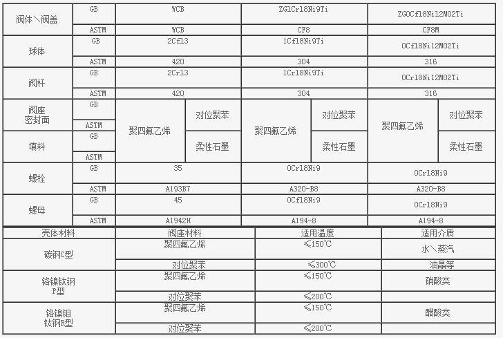 閥體材料:WCB、ZG1Cr18Ni9Ti、ZG1Cr18Ni12Mo2Ti、CF8(304)、CF3(304L)、CF8M(316)、CF3M(316L)、Ti。選用不同的材質,可分別適用于水、蒸汽、油品、硝酸、醋酸、氧化性介質、尿素等多種介質。