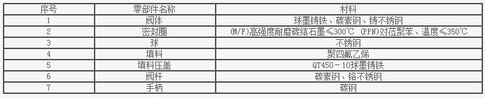 高溫氣動球閥主要零部件材料: