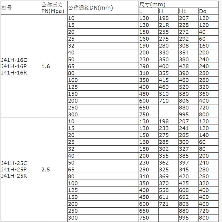 型號:J41H-16C(鑄鋼)、J41H-16P(304)、J41H-16R(316)、J41H-25C、J41H-40C、J41H-64C、J41H-64P、J41H-64R