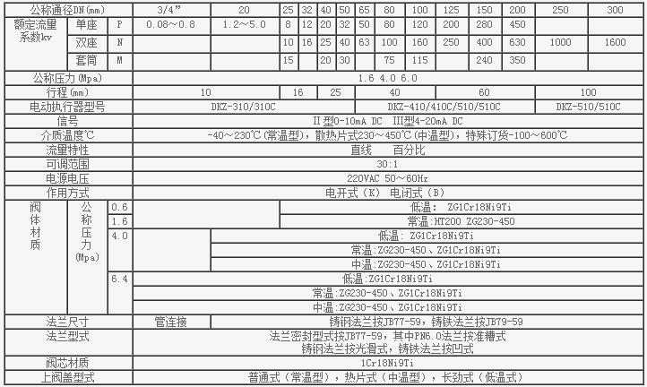 電動套筒調節閥規格與技術參數