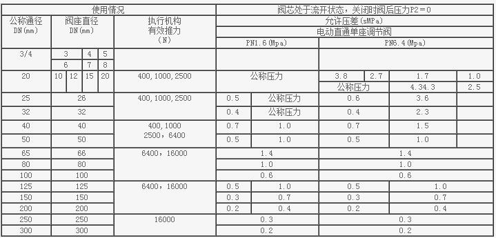 注:雙座、套筒閥一般可承受≤公稱壓力,單座調節閥差壓可參考上表。