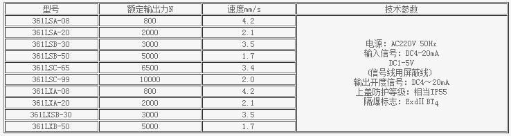 執行機構主要技術參數