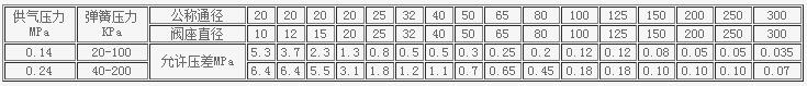 氣動薄膜單座調節閥規格與技術參數