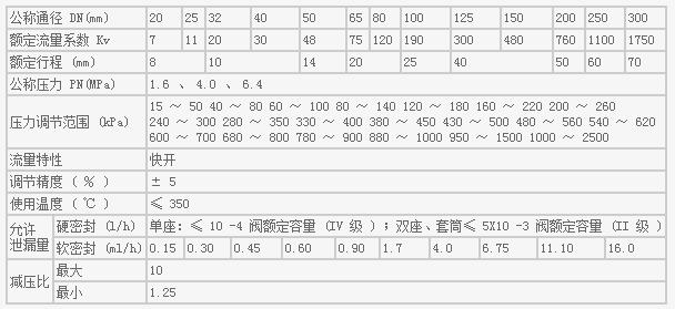 自力式壓力調(diào)節(jié)閥主要技術(shù)參數(shù)和性能指標(biāo)