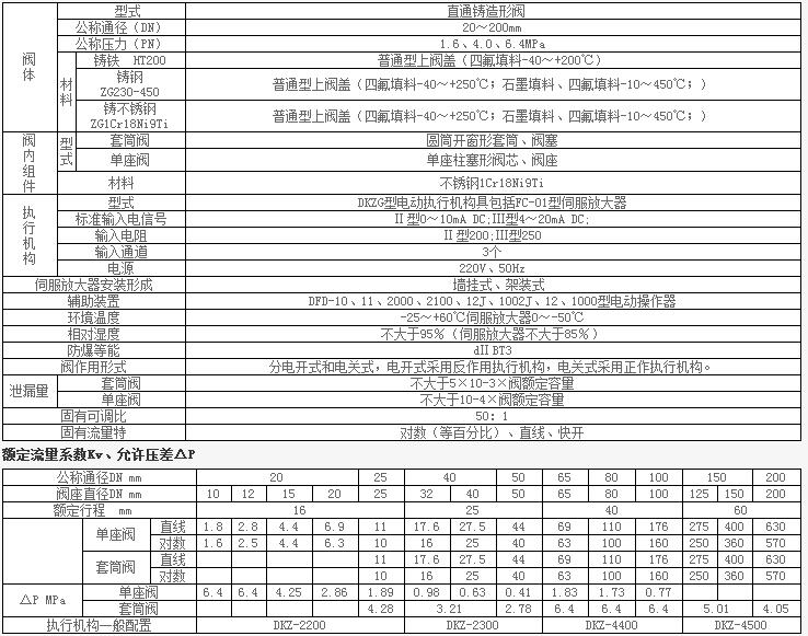 1、名稱、型號 2、公稱通徑 3、閥座直徑或額定流量系數 4、輸入信號 5、閥體材料 6、固有流量特性 7、聚四氟乙烯填料或石墨填料 8、伺服放大器安裝形式 9、輔助裝置 10、其它要求