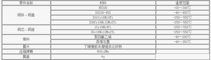 自力式微壓調節閥主要零件及推薦使用溫度范圍