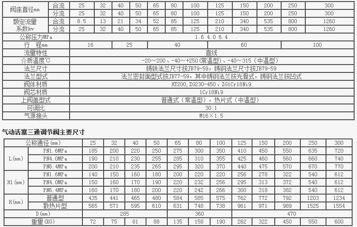 氣動(dòng)活塞三通調(diào)節(jié)閥主要技術(shù)參數(shù)
