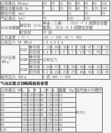 氣動活塞式切斷閥技術參數