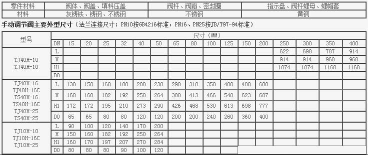 手動(dòng)調(diào)節(jié)閥主要零件材料