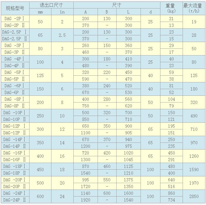 DAG-P型自動排污過濾器規格型號與技術參數: