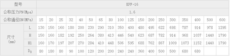 KPF-16法蘭平衡閥主要外形尺寸